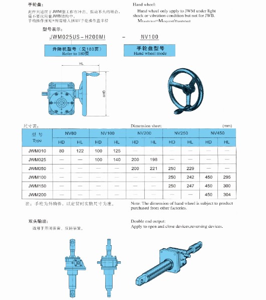 JWB滾珠絲桿升降機(jī),適用于高速,高頻率和高性能的裝置中,主要構(gòu)成部件為精密滾珠絲桿副與高精度蝸輪蝸桿副。